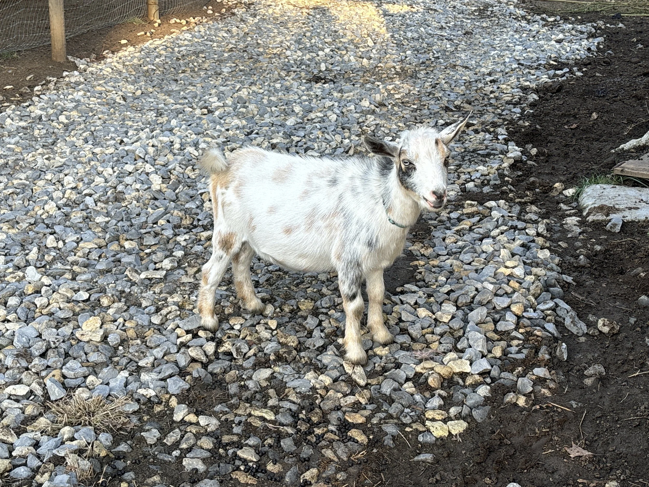 Prairie Creek Java Chip is a proven buck. He has sired several of ladies in our current herd. He is one of a set of quintuplets. He is attentive to his ladies and know exactly what his job is. He is sweet and gentle. This handsome little buck is small but mighty. We just love his robust beard. He is easily one of our favorites. It is hard to let him go. His sire was Prairie Creek Rocky Road and his dam is Prairie Creek Frappuccino. He has been our herd sire and has successfully worked himself out of a job. $200 registered.